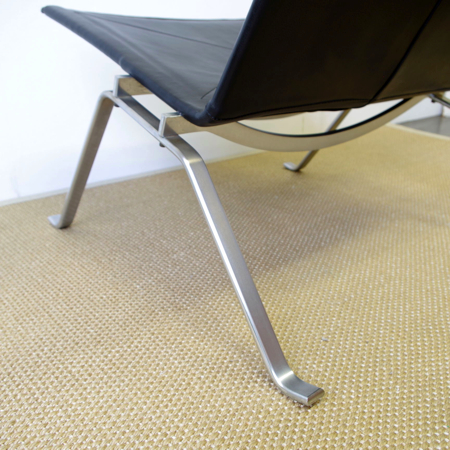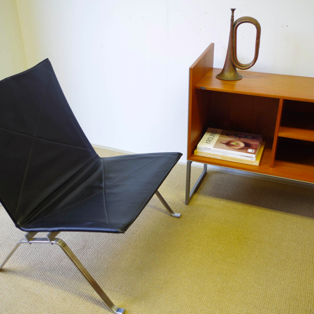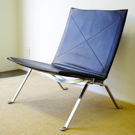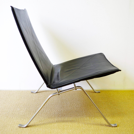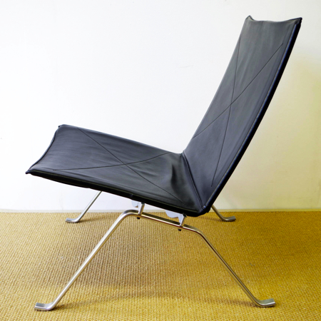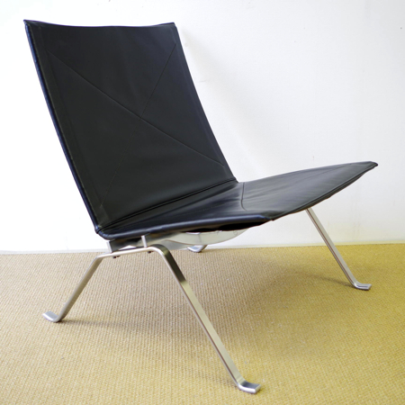 Poul Kjaeholm (ポール・ケアホルム) 1929-1980 デンマークの北ユトランド島オスターブロー生まれ。家具職人の修業を経て、ハンス・ウェグナーの事務所に勤めながらコペンハーゲン美術工芸学校を卒業します。 その後はフリッツ・ハンセン社や他のデザイン事務所に勤務、王立芸術アカデミーにて教鞭をと、51歳の若さで亡くなるまで数々の名作を生み出していきます。 木製家具が主流の時代に金属を用いた家具を作り続けた彼が異端だとは見なされなかったのは、その根底にしっかりとしたデンマークデザインの温かみを感じさせるからではないでしょうか。 代表作であるPK22は若干26歳の時に作られた、製品化された最初の椅子であるのにも驚きです。