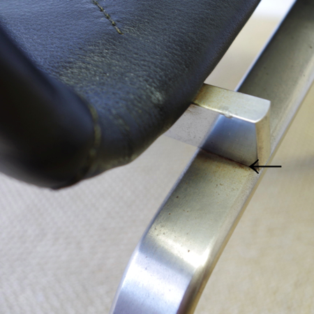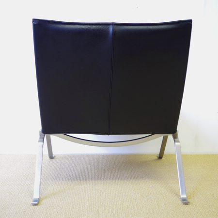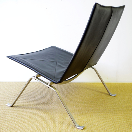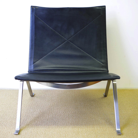 ポール・ケアホルムが1955年にデザインしました名作、イージーチェアPK22です。 ミース・ファン・デル・ローエの名作バルセロナチェアをリ・デザインしたこのPK22は、1957年のミラノ・トリエンナーレにてグランプリを受賞しました。余計なものをそぎ落としたミニマムな構造と、細部にまでゆき届いたデザイン性の高さ。これが若干26歳の時に作られた、製品化された最初の椅子であるのにも驚きです。 脚部に多少の経年感がございますが、レザー部分はたわみもなく非常に良い状態です。