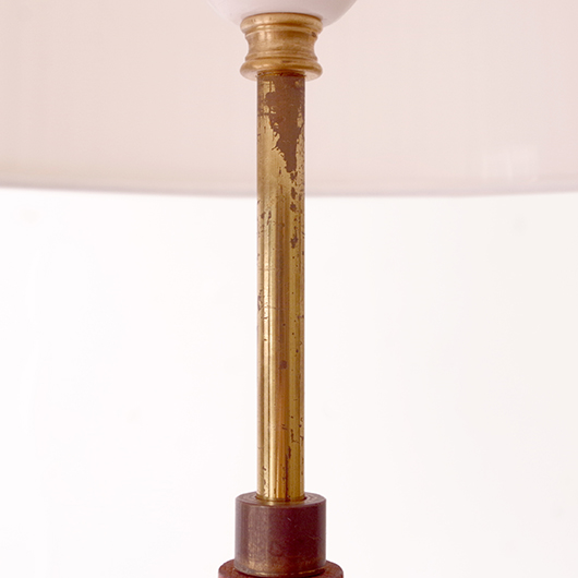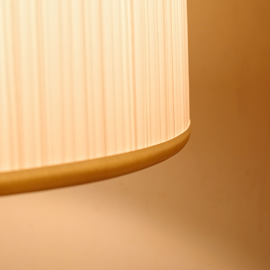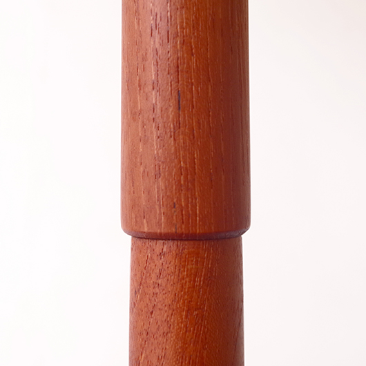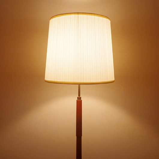 1960年代デンマーク製のヴィンテージフロアランプ。支柱の主な素材となっている真鍮は、経年変化によってくすんだ深みのある味わいを感じます。そんな”いぶし銀の味わい”を備えた真鍮に合わせたのは、同じく経年変化をしたチーク材。このしっとりと落ち着いた雰囲気は、ヴィンテージならではのものではないでしょうか。そのため真鍮部分はピカピカみは磨かずに、ヴィンテージの風合いを残す仕上げとしております。 支柱は30cmほど伸縮できる構造となっており、置く場所に合わせ高さを変えてお使いいただけます。 シェードは本体の雰囲気を引き立てるものを国内にてオーダーしました。不規則な折りの繊細なプリーツが特徴で、光を透過させる素材のためにサイズ感以上に明るく感じます。新しく交換したコードなども、ヴィンテージの風合いに合うデザインをセレクトました。お使いのインテリアにプラスするだけで、お部屋の雰囲気をぐっと増してくれます。 電気工事士の資格を持つ職人によりソケット・コード・プラグ等の電気に関わる部分は全て交換し、電気用品安全法に基づいた点検なども行いPSEマークを表示しておりますので、新しいもの同様に安心してご使用いただけます(詳細下記ご参照)。詳しくは画像にてご確認ください。