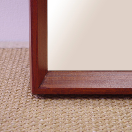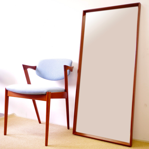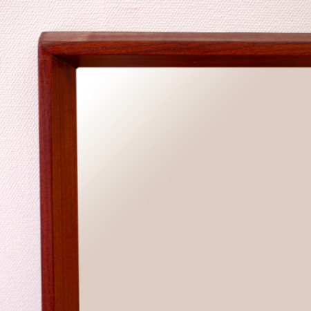 1960年代の壁掛けミラーです。 ウォールナットの無垢材を使用した深みのある焦げ茶色のフレームは、斜めに削り出されており、シンプルながらしっかりとした作りです。 裏面には壁掛け用の針金が付いておりますが、ずっしりとした重量がございますので、床置きにして姿見として活用するのもおすすめです。 ミラー・フレームともに小キズなどがございますが、気にならない程度かと思います。詳しくは画像にてご確認下さい。