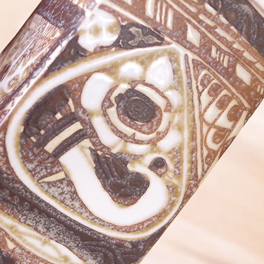 現在販売されているロイヤルコペンハーゲンとは趣の違うこのシリーズ、それは時代と製造窯の違いによるものです。 1775年に設立されたロイヤルコペンハーゲンは、1882年に製陶会社アルミニアに買収されます。その後もブランド名やマークが併存していましたが、1969年にアルミニアのマークを廃止してロイヤルコペンハーゲンに統一されることとなったのです。 アルミニアの強みは、FAJENCE(ファイアンス)という淡黄色の土の上に色釉をかけて低温で焼き上げる陶製法。 そのファイアンス窯で人気を博したのが、Nils Thorsson(ニルス・トーソン)がアートディレクターを務めた『Tenera(テネラ)』と『BACA(バッカ)』シリーズ。1958年から作られたテネラは6名の女性アーティストを起用し、鮮やかでモダンな絵柄が人気を博しました。その後1965年にバッカシリーズが生まれ、こちらはトーソンを含む男性4人のアーティストからなり、焦げ茶や藍色といった色味の落ち着いた作品を生み出しました。