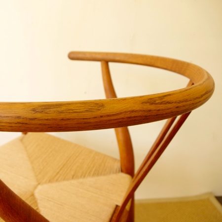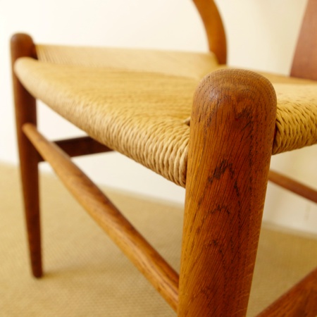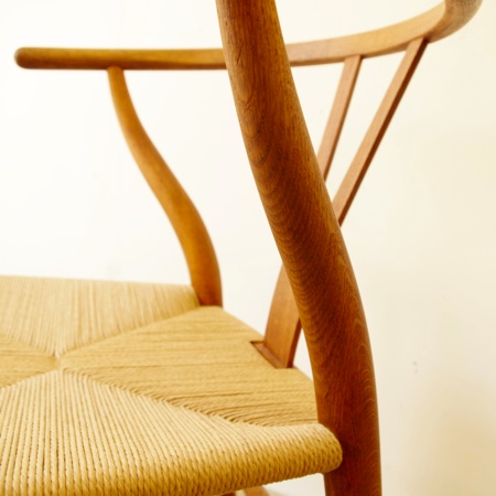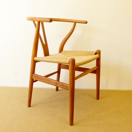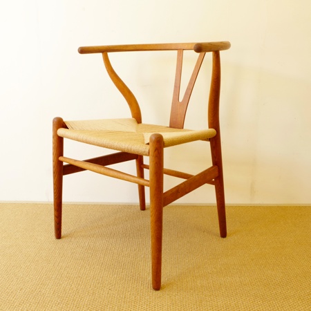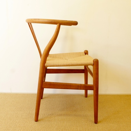 ハンス・J・ウェグナー初期の代表作、名作Yチェアのヴィンテージ品です。北欧家具と聞いてこのYチェアを思い浮かべる方も多いのではないでしょうか。1950年に発表されて以来、現在に至るまで作り続けられています。 フレームはオーク材が使われており、経年変化によって味わいの増した飴色となっています。名前の由来でもあるY字の背と座面のペーパーコードが、素朴で温かな雰囲気を作り出しています。 フレームはクリーニング後にオイル仕上げをし、ペーパーコードはデンマークにて経験を積んだ職人が新たに張替えをしました。年を経て生まれた味わいと新品の座り心地を、両方楽しめる一脚となっております。フレームに目立ったキズはなく、とても綺麗な状態です。詳しくは画像にてご確認下さい。