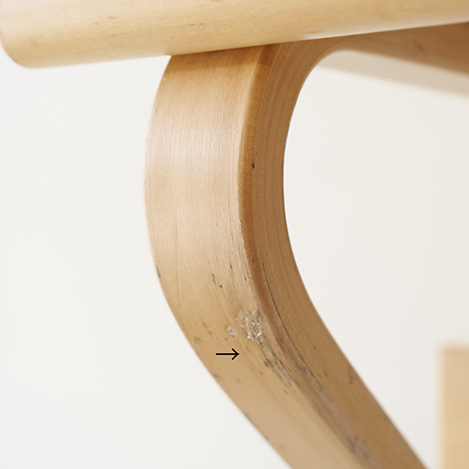 フィンランドの巨匠Alvar Aaltoが1936年にデザインしました、Artek社製ヴィンテージ コートラック109C。 トライアングルのようなループ状のフレームを土台として、上部にバーチの無垢材を横に渡したラック、その正面には同素材のポールがひとつ、そして下方には4つのフックがついた使い勝手の良いデザインです。 このフレームは数ミリにカットしたバーチ材の板を重ね合わせて曲げる「ラメラ曲げ木」と呼ばれるもので、柔軟性に富み強度もある素材ということでウォールシェルフのほかにもアームチェアやティートロリーなどにも用いられています。どこか温もりを感じるAaltoらしい素材使いです。 このコートラックはミラーやウォールシェルフなどと合わせて、ホームアクセサリーのシリーズとしてデザインされました。また近年2年ほど復刻されましたが、現在はヴィンテージでしか手に入らないものとなります。 玄関や廊下に設置するだけで、コートや鞄など毎日使うものをひとまとめに収納できます。明るい色合いでさまざまな家具との相性も良さそうです。 丁寧な修復を行いまして、全体的に綺麗な状態です。部分的に経年感が見られます。雰囲気を損ねる程ではありませんが、それらを考慮したお値段となっております。そのほか細部の状態などは、画像をご参照ください。 ※壁に直接取り付けるタイプとなりますので、下記の注記をご覧ください。