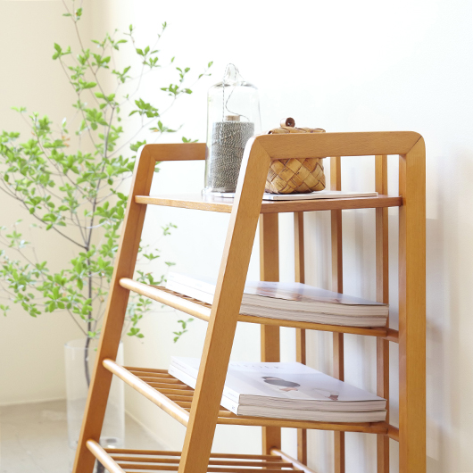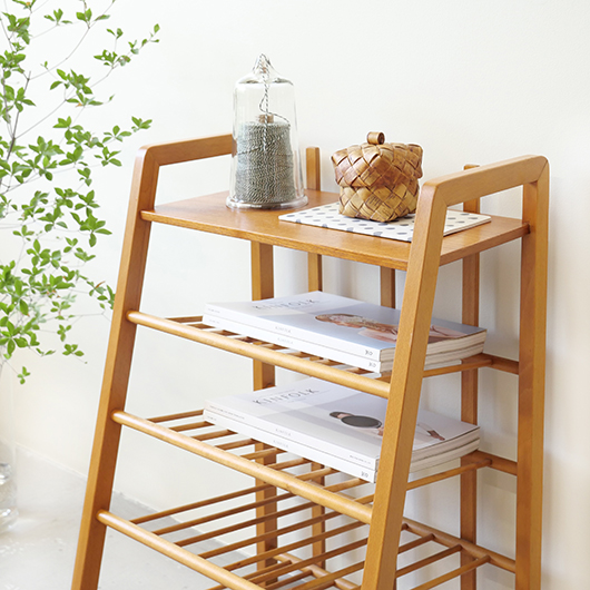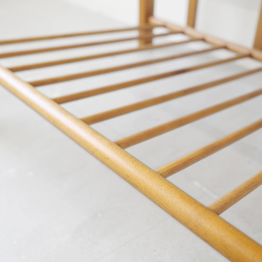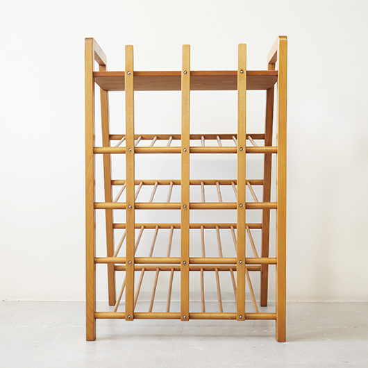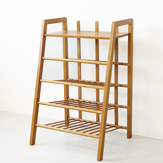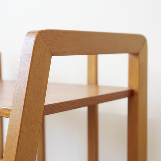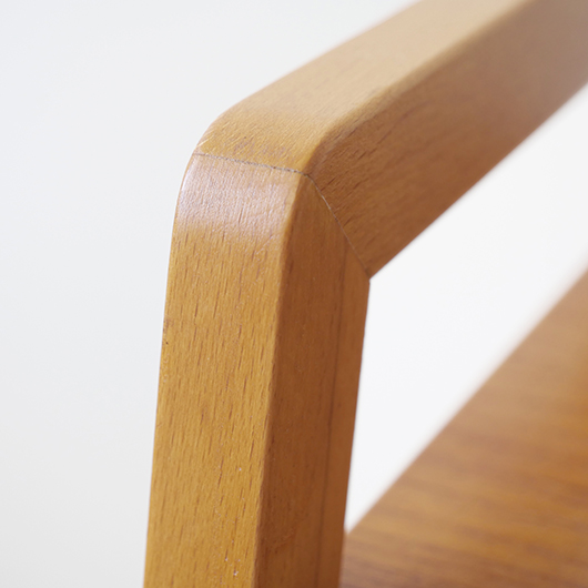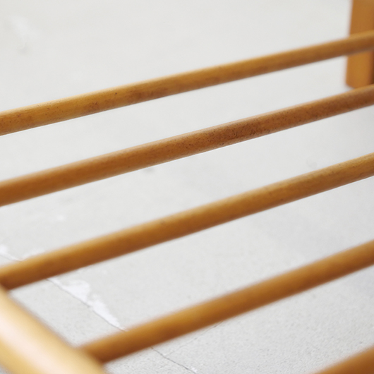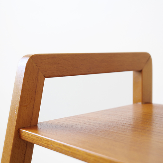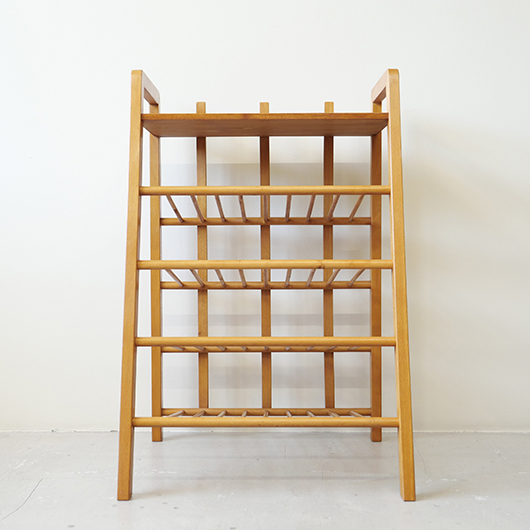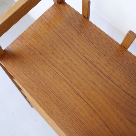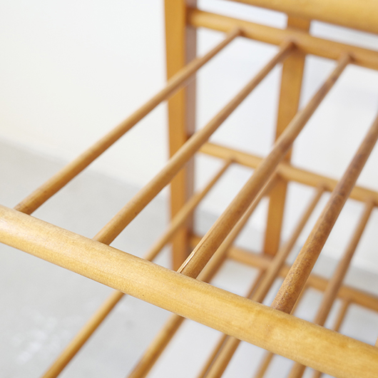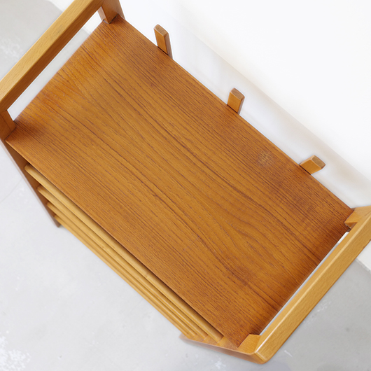 1960年代スウェーデン製のヴィンテージ マガジンラック。 横から見ると台形をした、下方に向かうにつれて奥行きが広くなってゆくモダンなフォルムが印象的です。最上部には天板を配し、その下にはダー状のラックを4段も備えております。フォルムに従うように上から段々にラックが大きくなっていくため、それぞれに適したサイズの雑誌などを収納することができます。また正面から奥へ向かって傾斜がかかっているため、収納したものを取り出しやすく使い勝手も良好です。 リビングの片隅に置いて雑誌や新聞をさっと片付けるなど、日々の暮らしに寄り添ってくれる雰囲気ある一台です。またたっぷりとした収納力のため、一般のご家庭のみならずカフェや美容室などでのご使用も、雰囲気作りに一役買ってくれそうです。 丁寧な修復を施しまして、全体的に綺麗な状態です。天板に若干の経年感が見られますが、雰囲気を損ねない程度かと思います。そのほか細部の状態などは、画像をご参照ください。