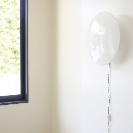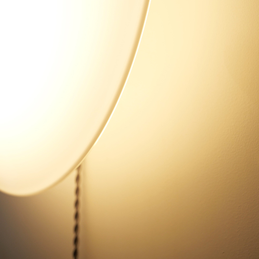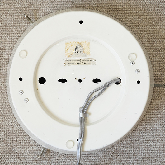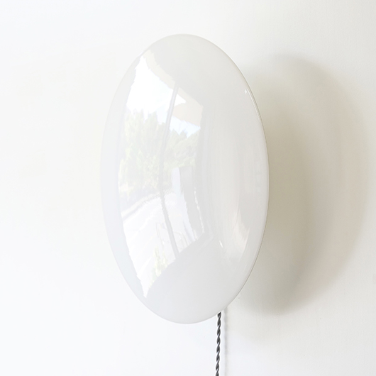デンマークを代表する建築家Arne Jacobsenが1959年にデザインしました、Louis poulsen製のウォールランプAJ Eklipta。 円形のシェードはまるで凸レンズのように中央が膨らんでおり、3層の吹きガラスゆえに明かりを灯した時に丸い輪郭が浮かび上がります。またシェード裏にベースがあることでシェードが壁面から離れ、周囲だけでなく壁面までも照らすことができるようになっています。この壁面を照らす間接照明もこの照明のポイントのひとつで、空間にやわらかな光を届けてくれます。 このAJ Ekliptaは自身が1956年に設計したRødovre市庁舎のためにデザインされたもので、その他にもクロックなど様々なインテリアをデザインしました。 リビングや寝室などで、落ち着いた明かりで辺りをやさしく彩ってくれることと思います。3サイズのうち一番大きいサイズのものとなります。新築やリノベーションの際はコードを壁面へ直結するとより美しい仕上がりとなるため、設計段階で組み込むと非常にスムーズです。 電気工事士の資格を持つ職人によりソケット・配線・プラグ等の電気に関わる部分は全て交換し、電気用品安全法に基づいた点検なども行いPSEマークを表示しておりますので、新しいもの同様に安心してご使用いただけます(詳しくは下記をご覧ください)。 丁寧な修復を施し、全体的に綺麗な状態です。背面エッジに僅かなチップがありますが、ベースの内側に隠れて普段は見えない場所となります。表面に若干の擦れなど見られますが気にならない程度です。そのほか細部の状態などは、画像をご参照ください。 ※こちらの商品は壁面に取り付けての使用となりますので、事前に下記【壁面への設置について】をご覧ください。