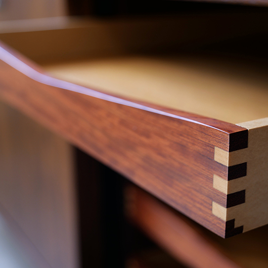 【mobilia 1963年No.96より】 こちらは当時のインテリア雑誌に掲載されたFrance and sonの広告で、今回のサイドボードと同シリーズのDiplomat ChairとDiplomat Writing Deskが載っています。デスクの引き出しには同デザインの取っ手が見られ、どんな豪華なワークスペースだろうと想像してしまいます。
