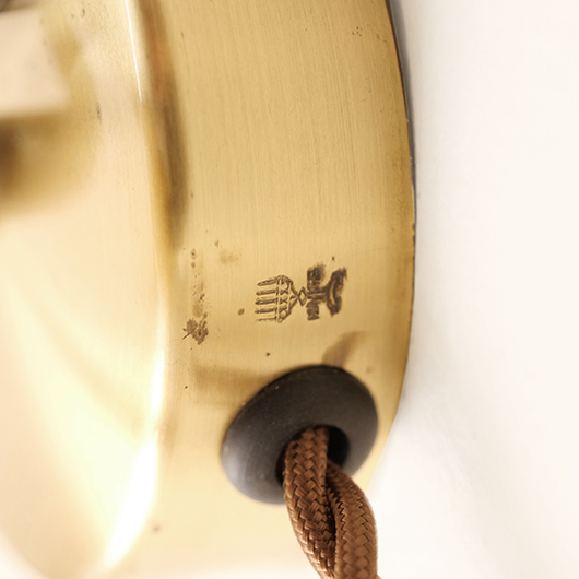 デンマークで買い付けました1950年代頃のオーストリアHAGS製のヴィンテージウォールランプ。 ベースからシェードまですべて真鍮製で、経年により鈍い光を湛えて深みをましています。シェードには小さな穴が開けられているため日中はドット模様に、夜にはそこから光が漏れ、また違った素敵な表情を見せてくれます。 シェードは下方から上方へ45度ほど角度を変えることができ、シェード上部についたツマミや支柱のカーブなどもデザインのポイントとなっています。 玄関などにはもちろん、ベッドサイドに掛けてナイトテーブルと合わせれば、空間の雰囲気を高めてくれることと思います。また店舗什器としてメニュー表や看板の上に取り付けても良さそうです。 電気工事士の資格を持つ職人によりソケット・配線・プラグ等の電気に関わる部分は全て交換し、電気用品安全法に基づいた点検なども行いPSEマークを表示しておりますので、新しいもの同様に安心してご使用いただけます(詳しくは下記をご覧ください)。 丁寧な修復を施し、全体的に綺麗な状態です。そのほか細部の状態などは、画像をご参照ください。 ※こちらの商品は壁面に取り付けての使用となりますので、事前に下記の注記をご覧ください。