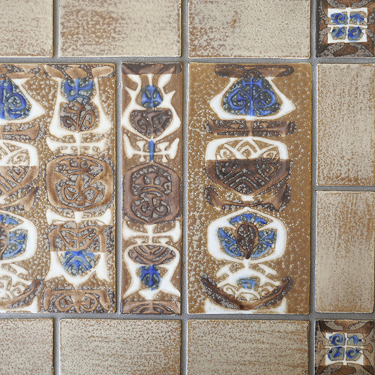 現在販売されているロイヤルコペンハーゲンとは趣の違うこのシリーズ、それは時代と製造窯の違いによるものです。 1775年に設立されたロイヤルコペンハーゲンは、1882年に製陶会社アルミニアに買収されます。その後もブランド名やマークが併存していましたが、1969年にアルミニアのマークを廃止してロイヤルコペンハーゲンに統一されることとなったのです。 アルミニアの強みは、FAJENCE(ファイアンス)という淡黄色の土の上に色釉をかけて低温で焼き上げる陶製法。 そのファイアンス窯で人気を博したのが、Nils Thorsson(ニルス・トーソン)がアートディレクターを務めた『Tenera(テネラ)』と『BACA(バッカ)』シリーズ。1958年から作られたテネラは6名の女性アーティストを起用し、鮮やかでモダンな絵柄が人気を博しました。その後1965年にバッカシリーズが生まれ、こちらはトーソンを含む男性4人のアーティストからなり、焦げ茶や藍色といった色味の落ち着いた作品を生み出しました。