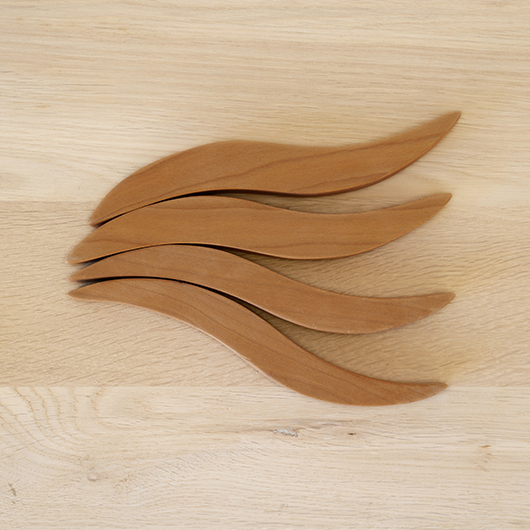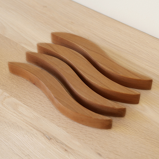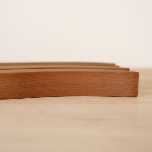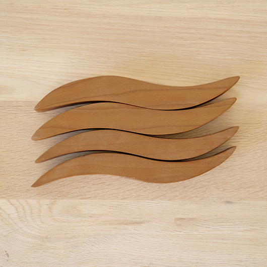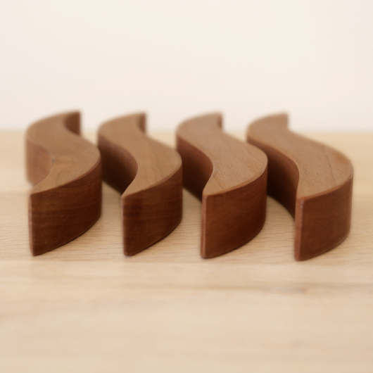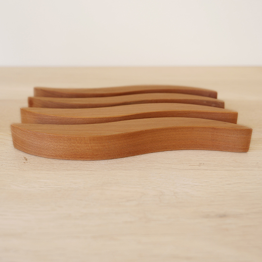 Georg Jensenなどで活躍したプロダクトデザイナーHelle Damkjærのデザインによる、デンマークRoyal Copenhagen製のヴィンテージ 鍋敷き。 緩やかなS字カーブを描くスティックが4つセットとなり、自由な形を作ることができるユニークなデザインです。素材はチェリーと思われる無垢材が用いられているため、ヴォリューム感もあります。 ポットに鍋など、合わせる品によって幅を変えながら使用する鍋敷きとして活躍してくれます。使用していない時はオブジェのような美しさがあるため飾って楽しんだりと、実用性を兼ね備えたキッチンアイテムとしていかがでしょうか。 全体として綺麗な状態です。そのほか細部の状態などは画像をご参照ください。