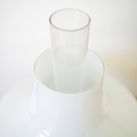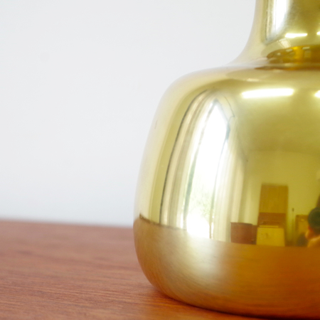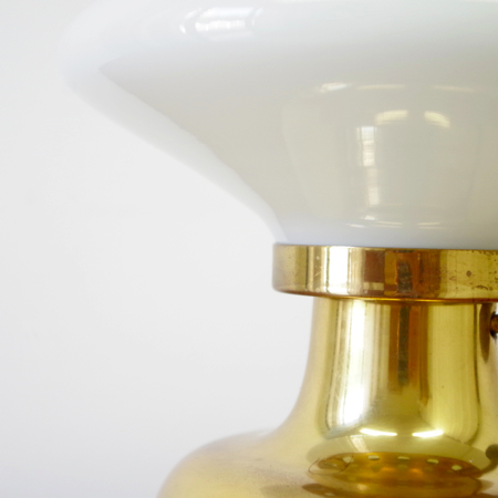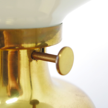 デンマーク王室御用達の銀器ブランド、ジョージ・ジェンセンにて活躍をしたヘニング・コッペルが1962年にデザインしました、ルイス・ポールセン社製のオイルランプPetronellaです。 鈍い光をたたえる真鍮の本体と乳白色のシェード、何ともシンプルで潔い構成が、優美な曲線をより強く印象づけてくれます。彫刻を学んだコッペルらしいエレガントな曲線を有する形状から、Petronellaという女性の名前が付けられているようです。 本体には、80時間ほど使用できる量のオイルを入れることができます。電気の灯りとは異なる、やわらかな灯りがお部屋に広がります。芯は新しいものに交換しまして、クリーニングおよび動作確認済です。ランプ専用のオイルをお付けしますので、すぐにご使用いただくことが可能です。製作年により少し形状が変わるようで、①は初期タイプとなります。ホヤ(中央のクリアガラス)を支える部分にクラシカルな装飾が施されており、乳白色のシェードも薄く繊細です。ホヤの先端に極僅かなチップがありますが、気にならない程度です。全体として良好な状態を保っています。