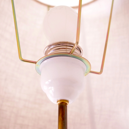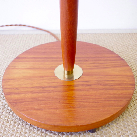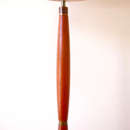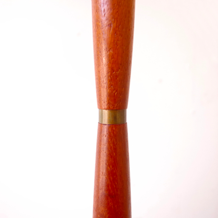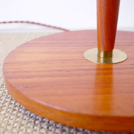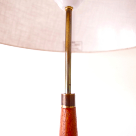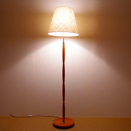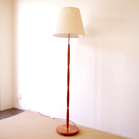 1960年代デンマーク製の、ヴィンテージフロアランプです。 チーク材の支柱に金属を組み合わせ、リズム感のあるくびれを持たせています。いつものインテリアにフロアランプを追加するだけで、そのやわらかな灯りによってお部屋の雰囲気をぐっと増してくれます。ソファの脇に置いて本を読む際の手元ランプとして、リビングや寝室のコーナーに置いて間接照明のとしてなど、様々なシチュエーションでの用途が思い浮かびます。 シェードは本体の形が美しく見えるように国内にてオーダーしたコットン地のものです。新しく交換したコードなども、ヴィンテージの風合いに合うデザインをセレクトました。 電気工事士の資格を持つ職人によりソケット・コード・プラグ等の電気に関わる部分は全て交換し、電気用品安全法に基づいた点検なども行いPSEマークを表示しておりますので、新しいもの同様に安心してご使用いただけます(詳しくは下記をご覧ください)。 支柱上部の金属に若干の経年感がございますが、ヴィンテージらしい味わいかと思います。詳しくは画像にてご確認ください。