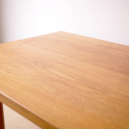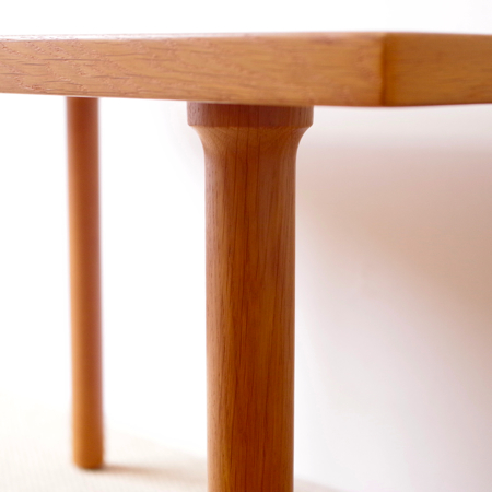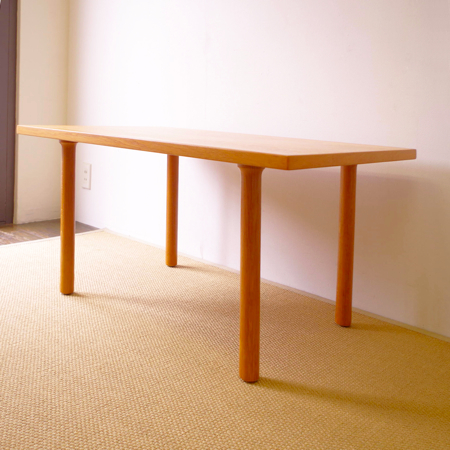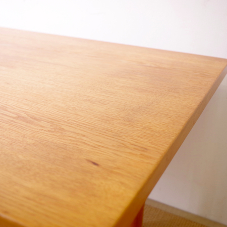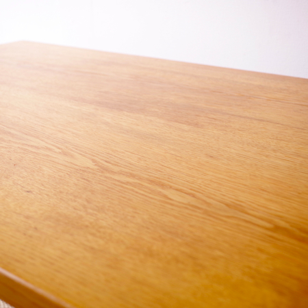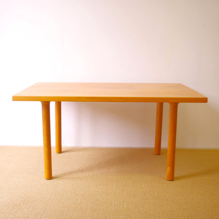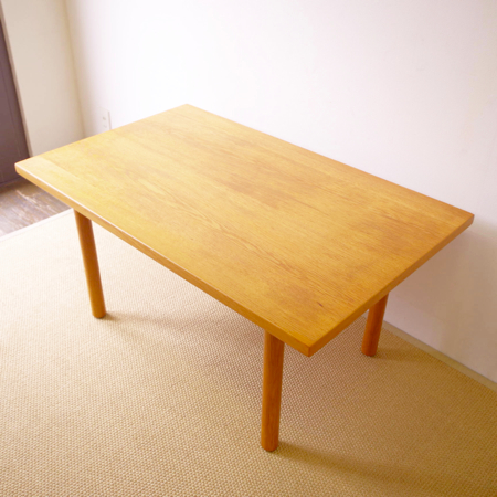 北欧を代表するデザイナー、ハンス・J・ウェグナーによる、ヴィンテージコーヒーテーブルです。 潔いまでに無駄をそぎ落としたデザインが素材の良さを引き立ててくれます。そんなシンプルな造りの中にも、天板との接合部にみられる脚部のくびれや全体のプロポーションなど均整の取れた美しさは、さすがウェグナーの作と言えます。経年を経て飴色に変化したオーク材は、圧迫感のない柔らかな雰囲気で、部屋を明るくしてくれるようです。同じオーク材を用いていることもあり、GE290やGE370など他のウェグナー作のソファとの相性もばつぐんです。 フルサンディングを行った後、再塗装を行いました。自然な艶のとても良い雰囲気に仕上がっています。多少の水濡れにも問題のない塗装を施しておりますので、小さなお子様のいるご家庭でも安心してご使用いただけます、全体的に綺麗な状態です。わずかにキズなどございますが、気にならない程度の小ささです。詳しくは画像にてご確認くださいませ。