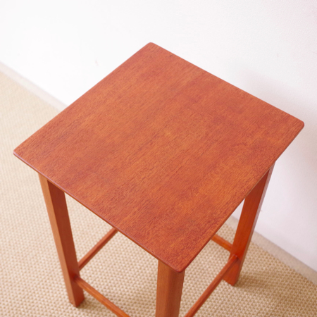 1960年代デンマーク製の、ヴィンテージフラワースタンドです。 何気ないデザインですが、脚部外側のみ角を落としてあったりと、すらりとしたフォルムが目を惹きます。ゆっくりと成長して目の詰まった、上質なチーク材はヴィンテージならではのもの、その無垢材を贅沢に使用しております。 場所をとらないサイズですので、玄関先で花瓶を置いてお客様をおもてなしするのも素敵です。またベッドサイドで時計や本をさっと置いても便利にお使いいただけます。 丁寧な修復をしまして、非常に綺麗な状態です。