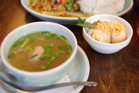 ランチすべてに付くのがこちら2点。生春巻きはもちっとした皮と瑞々しい具材とが相まって、もちろんの美味しさ。スープは辛みと酸味がとても強く、飲んだ後はしばらくお腹の中がぽかぽかとしてました。