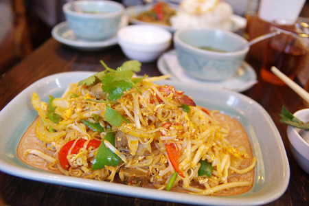 そしてすぐにやってきたのは「センレック・パット・トムヤム」。トムヤム風味で海老の入った、スパイシーな焼きビーフンです。スープにパンチが効いていたので、何だか穏やかにすら感じてしまいます。シャキシャキのもやしがたっぷり入っていて、食後もたれることなく美味しかったです。
