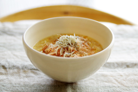 ここ数日、急性胃腸炎に苦しんでいまして・・・口にしたものと言えば、お水、お粥、リンゴが精一杯。やっと今日からお粥を卒業して、雑炊となりました!卵雑炊の上に、かつお節とちりめんじゃこを少々〜
