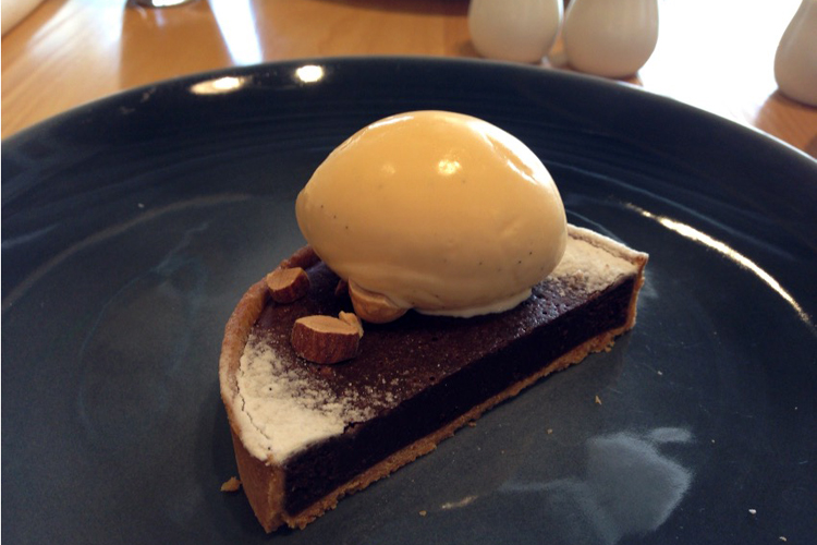 午前中は倉庫で力仕事をがんばったということで、別腹のデザートもオーダー。温かなタルト・ショコラにバニラのアイスが乗っています。アツアツではなく、アイスがすぐに溶けない”ぬくい”くらいの温度なのがGOOD。大満足のランチでした!