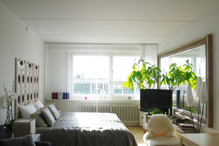 キッチン付きの広めのワンルームで、プチデンマーク生活を楽しみます。部屋では輸出書類をまとめたりとデスクワークもあるので、居心地が良いのは助かります。。
