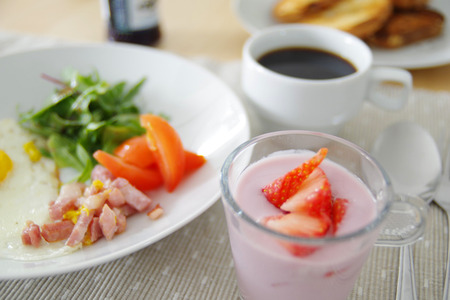 そして朝食、先日通りすがりの直売所で購入したイチゴをヨーグルトに入れて。スケジュールが押して昼食を食べ損ねることも多々あるので、朝食はいつも以上にしっかりと!