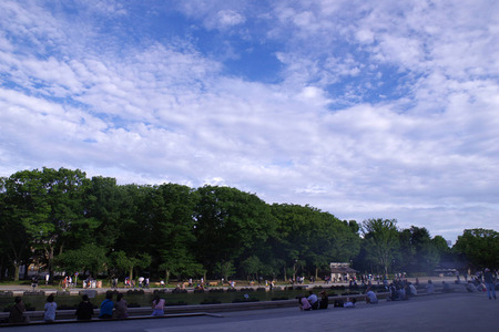 噴水の周りでただのんびりしている様子は、まるで海外の公園のよう。。建物が見えずに空が開けているからそう思うのかしら。