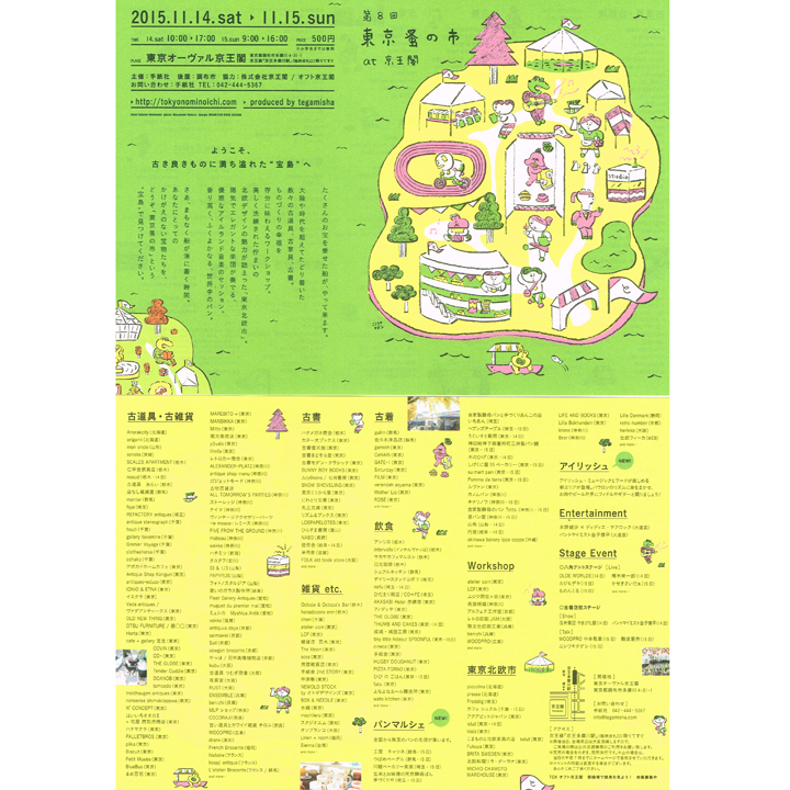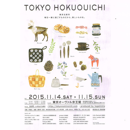 古道具や古書の他にも、カフェにパンマルシェまで様々なお店が出店します(上記チラシはクリックで拡大)。今年は東京蚤の市の中の「東京北欧市」だけのチラシやポスターも制作されて、私たちSalutもより素敵なブース作りをしなければと気合が入ります。。