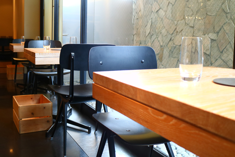 オープンと同時の店内(の片隅)を一枚だけ。カジュアルな内装で変な緊張感はなし、キッチンとはフルオープンで繋がっているのが面白いです。