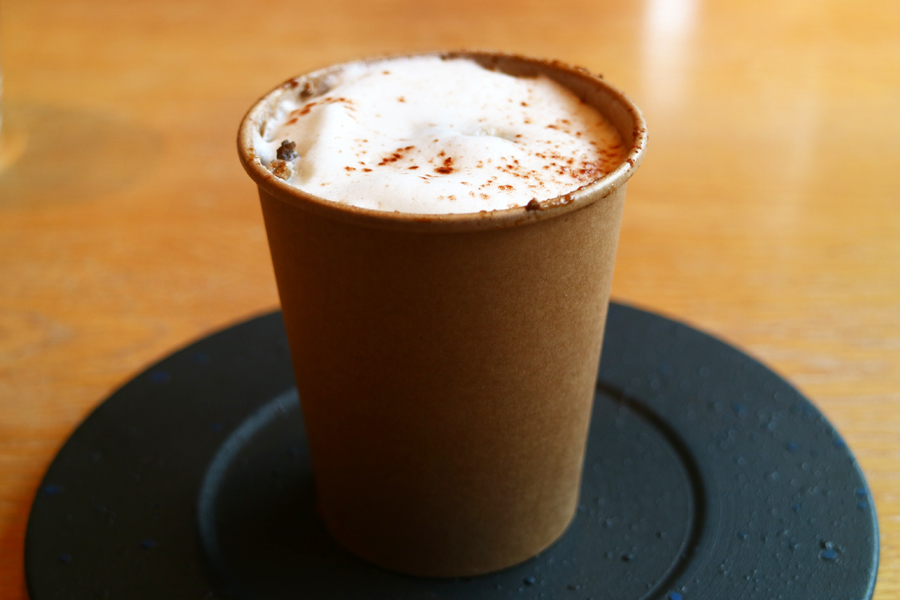 デザートは「カプチーノ??」?付きの名前ですが、珈琲のムースとクランブル(崩したクッキー生地)がカップの中に入っています。フォームドミルクを上にかけてあって、これでカプチーノ仕立てになっているのですね。面白い盛り付けで楽しく味わえたのですが、スイーツ好きとしては正統派のアシェットデセール(皿盛りデザート)を期待してしまった…。