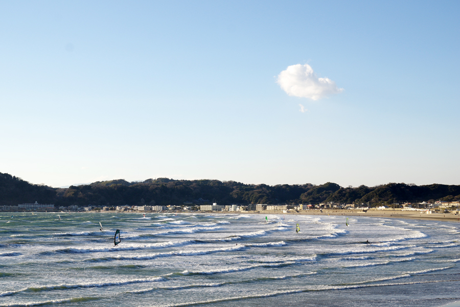 海岸沿いの道を帰宅中、寒いであろう海岸はたくさんの人で賑わっていました。この波の様子からもわかるように、この日は強風。ということで、ウインドサーフィンの方々がほとんどです!