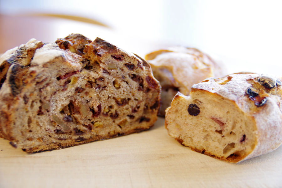 こちらはカットした後、冷凍庫行きだったのもたち。ドライフルーツやナッツがたっぷり入っていても、ちゃんと小麦が主役なのが素晴らしい。