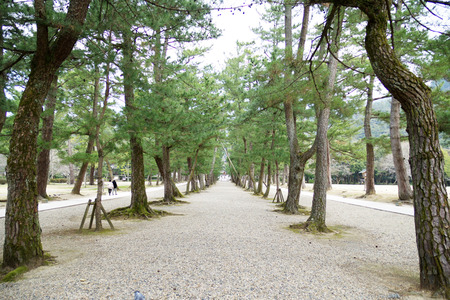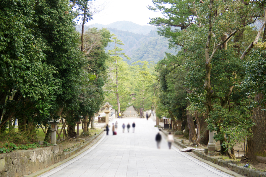 中ノ鳥居の真下より(拝殿までに全部で4基の鳥居があります)。ここから真ん中は神様や神職・皇族の方々が通り、我々は両端へ。この日は雨予報でしたが、途中から太陽も出てきました。