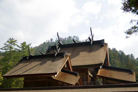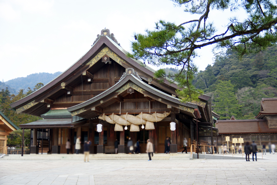 横からの御本殿。高さは24mと神社の神殿では最大のもの。とはいえ古代はこの倍の高さ、48mの場所に神殿があったと言い伝えられているから驚くばかりです。