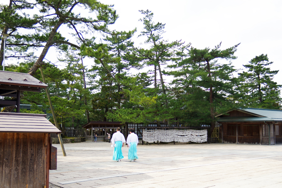 20年に一度式年遷宮を行う伊勢神宮は、宮地を改めて全てを新しくするというもの。この出雲大社の60年に一度行われるの大遷宮は、すべてを新しくするのではなく既存の建物に修繕を施すのだそう。今回は建物の修繕や屋根の葺き替えが行われました。