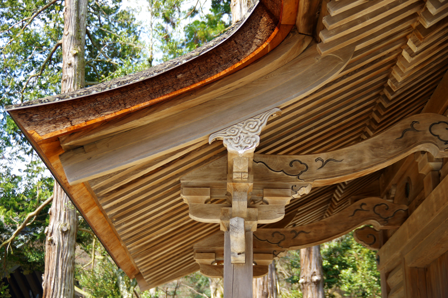 真新しい檜皮葺の屋根。八雲のモチーフがあちこちにありますね。