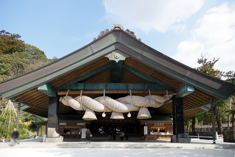 そうそう、よく言われる”大しめ縄”は、拝殿ではなくこちら神楽殿のもの。直径1.2mの大縄を2本撚り合せ、重さは何と4.4tなのだそう!