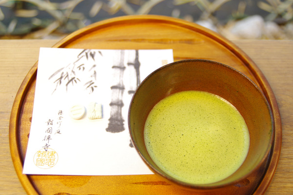 竹林の新緑を愛でながら、ホ〜ッと一息。お隣では外国の方々がお抹茶を飲む姿を撮り合っていて微笑ましい。。