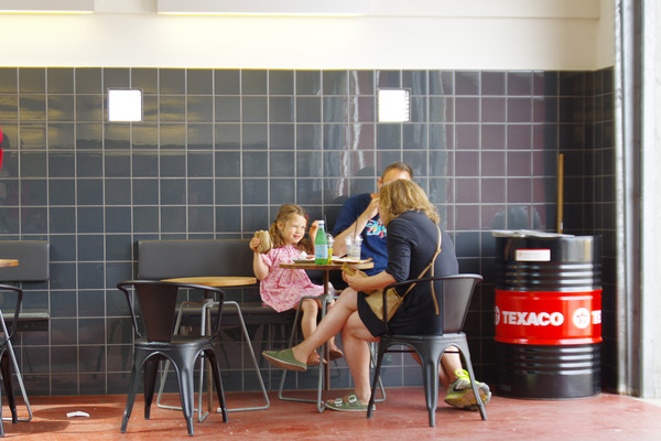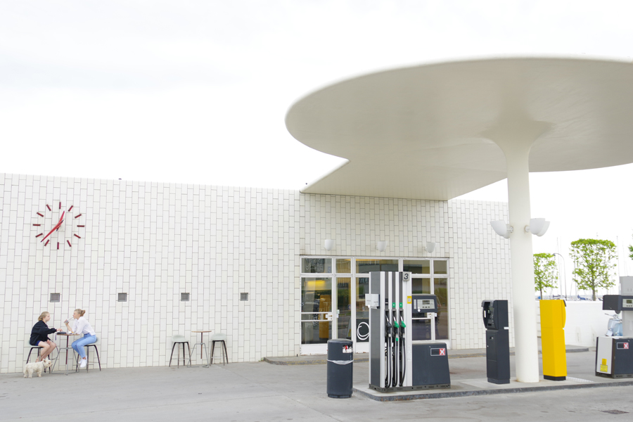 ふと思い立つとお昼時を過ぎていて、ヤコブセン設計のガソリンスタンド内のカフェに寄りました。