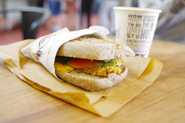 選んだフムス&アボガドの入ったサンドイッチはとても美味しく、満腹に。ちょうどクラシックカーのイベントが近くで開催されていて、場所を貸していたからかイベント提供の無料のコーヒースタンドが。物価が高いデンマークではありがたいサービスでした。