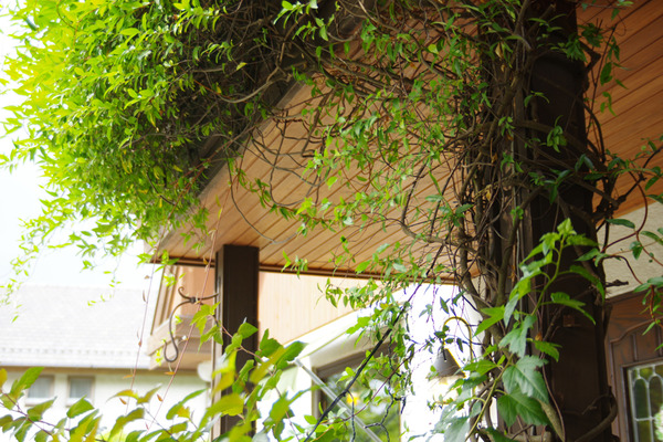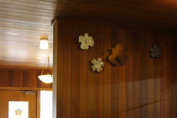 見上げると、木の壁にはバーズワーズさんの鳥とお花のオーナメントが。鳥の小さなタイプはSalutでも取り扱いが始まりました(ウェブストアでの販売も準備中です)。