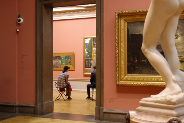 若い少年3人組がやってきたかと思ったら、観賞用の折りたたみ椅子を持ち出して絵画の勉強を。この作品に対しての身近さを、海外の美術館では良く感じます。