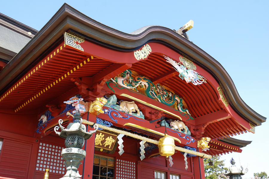 青い空に映える拝殿は昨年塗り替えられたばかりで、なんとも艶やかな姿。ケーブルカーで訪れることができる道中が似ているからか、皆に親しまれている雰囲気も含めて、ふと大山阿夫利神社を思い出しました。早朝のお参りは清々しいの一言ですね。