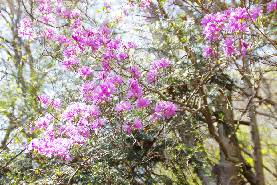 登山の最中はあちらこちらで春の訪れを感じることができたのですが、こちら背の高い「みつばつつじ」も花盛り。