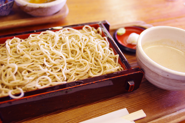 蕎麦の香りも十分な細めの二八は喉越しも良く、クルミのつゆは胡麻よりもクリーミーで独特の風味が美味。添えられた擦りたてのワサビを付けると、つゆが引き締まって異なる味わいを楽しませてくれます。そういえば駅の売店でもワサビを販売していたので、近くで栽培しているのでしょうね。