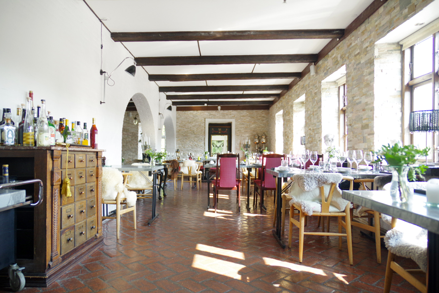 Kroとは日本でいうと旅館のような感じで、こちらも19世紀から続く田園風景の中にある老舗宿。日本の旅館にも食事に力を入れている所があるように、Kroもこのようにレストランを併設していることも多いそう。そして部屋の奥に目を凝らすと…