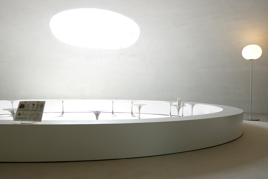 もう一つのちいさな建物はミュージアムショップ(こちらは撮影可です)。ハイサイドライトから光の降り注ぐ円の中はカフェになっており、縁に沿って座ると10人少々でいっぱいになる感じ。