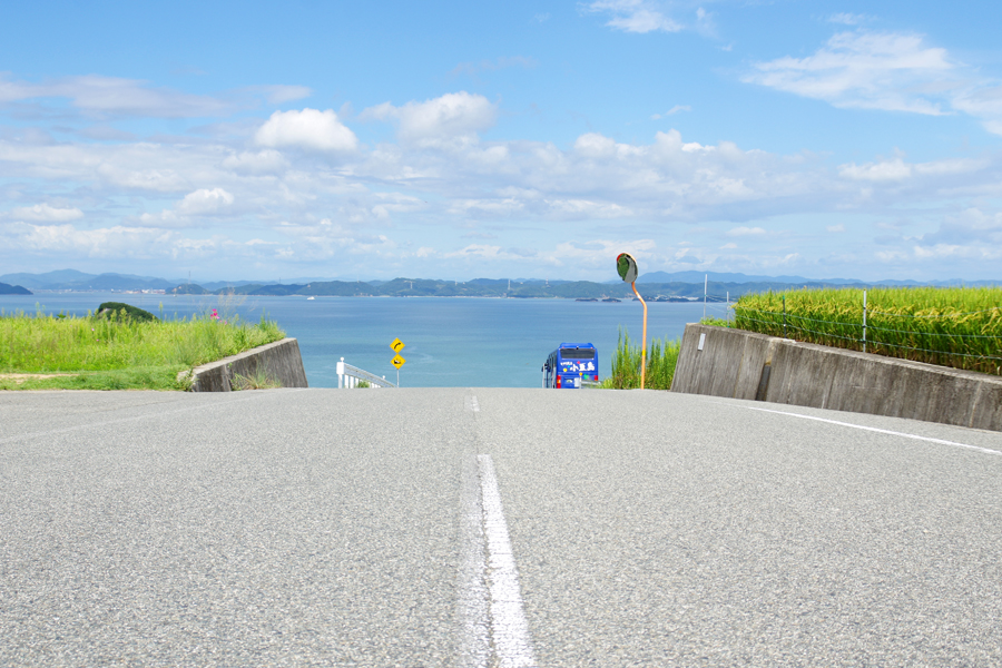 この島での目的はひとつ、豊島美術館への再訪です。棚田に湧き出た泉のような水滴を模した白い建物が、小高い丘の上に現れます。ここは建築家・SAANAの西沢立衛氏と現代アーティスト・内藤礼さんとのコラボレーションによる美術館で、建物と作品が一体となったような唯一無二の空間なのです。