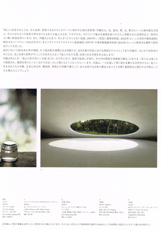 ちょうど豊島美術館に行ったばかりだったので、内藤さんの作品にピントが合わせやすいというか、いつも以上にその世界に入ることができたような気がしました。。