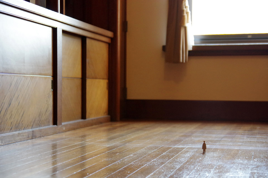 天井からトップライトが降り注ぐ建物を生かしてか、今回は自然光のみの展示。大きさの異なる幾つかの部屋が幾重にも重なる会場では、パッと明るい部屋と薄ぼんやりと暗い部屋が交互にやってきて、部屋を移る度に部屋と自分とを馴染ませるようにじっと佇みました。