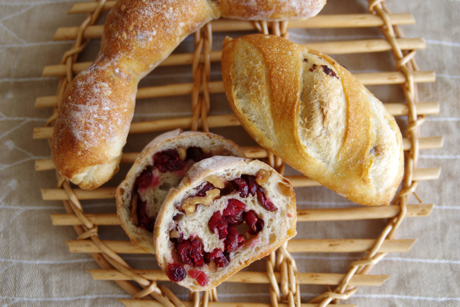 ということで翌朝は、ドドンと3種類。気づくとバゲット生地ばかりになってしまいましたが、特に手前のクランベリーノアが美味でした〜。
