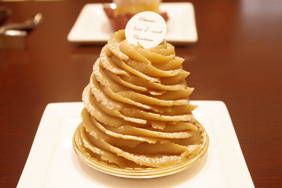 そしてシーズンものの「mont blanc」は2人でシェア。しっとりとした和栗のペースト、芸術的な絞り方です。。面白いと思ったのが、通常はメレンゲが入っている底部分に、薄いサブレに変えていたこと。上にはゴロリと渋皮煮がひとつ入っていますが、サブレならメレンゲよりも湿気に過敏にならずに済みますね。