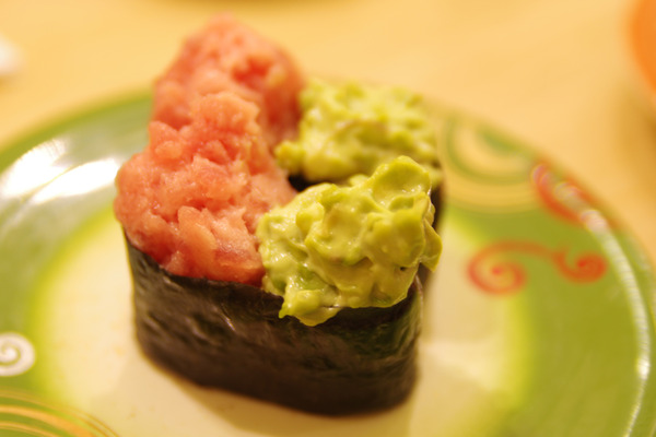 まぐろアボカド軍艦。その他私の目玉・活きホタテなど何をいただいても新鮮で、さすが北海道からの直送。まだまだあれこれいただきましたが、一人千円台で満腹に。ごちそうさまでした〜。